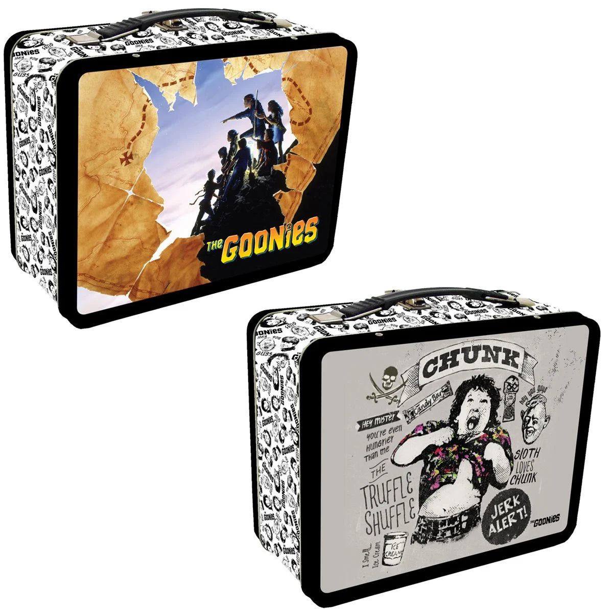 From Factory Entertainment comes The Goonies Tin Tote! This high quality tin tote features fantastic artwork inspired from the hit movieThe Goonies! Measures about 8 3/5-inches long x 6 3/4-inches tall x 4-inches wide.