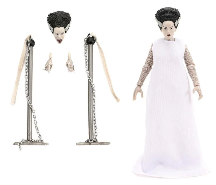 The Universal Monsters have finally been made into 6 inch scale figures! Jada presents The Bride of Frankenstein figure based on the classic 1935 film. She is fully articulated and comes with interchangeable heads and several accessories.
